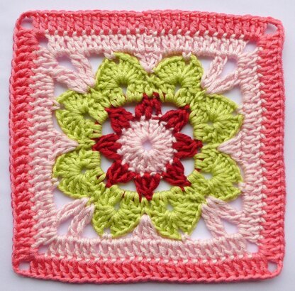 For this yarn and hook finished size of the square is 14 x 14 cm (5 1/2’ x 5 1/2’)