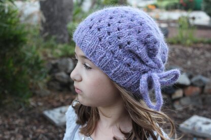 Named for the fashionable district of Paris, Le Marais is a slouchy hat with eyelet polka dots and cinched with an i-cord bow for a sweet winter accessory - tres jolie!