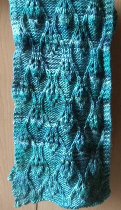 | One size only: | 70” [178 cm] x 8” [20 cm] after wet blocking |