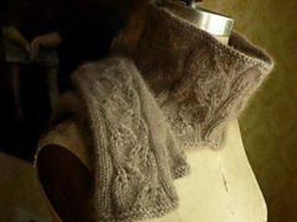 Softly-sculpted overlapping leaf motifs create warm depth in this cuddly neckwarmer and mitt set in two sizes (S, L). The neckwarmer features a pretty scalloped bottom edge and the mitts have a sculpted thumb gusset for a beautiful fit. Substituting yarn and/or needles may result in an overall variation in size.