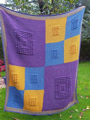 This is the biggest, cosiest throw I’ve designed so far. I wanted to keep the Tunisian crochet stitches simple while exploring some dramatic colour changes. The bulk of the throw is worked in Tunisian net stitch and I’ve included bobbles on a ground of Tunisian simple stitch for texture. There is a honeycomb stitch border to stop any curling. The throw starts at the bottom border and finishes with the top border. The side borders are picked up and worked, and then I finished with a round of standard double crochet. Pattern is written in English and uses UK terms.