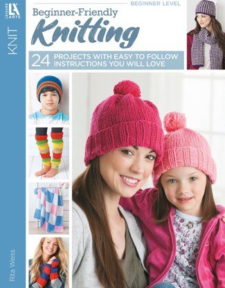 Leisure Arts Beginner-Friendly Knitting eBook- A variety of easy knitting designs that a beginner can make with confidence. New knitters can become frustrated diving into a complex pattern too soon. These projects require a minimum of skill, yet create amazing projects. Includes: a cuffed slouch hat, beanie, mother/daughter hat, child's hat and scarf, leg warmers, fur scarf, hooded scarf, cowl, a tote bag, writers, dishcloth, pot holders, face cloth, baby blanket, ripple afghan, scalloped afghan, lace throw, and many others. Basic knitting tips, illustrated diagrams and guides are also included. Also available as a physical copy: LEA6464 Leisure Arts Beginner-Friendly Knitting Book. 51 pages, PDF download.