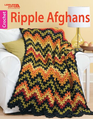 Leisure Arts Ripple Afghans Crochet eBook- Everyone loves a ripple afghan. Crocheters know that a ripple design works up faster than most other afghan patterns. That's because the zigzag rows are easy to establish and maintain without demanding all of your attention. Throw in a little variation in pattern or color, or add a sweet motif or edging, and the results are gorgeous. As an added bonus, there is a guide to creating the ripple pattern, plus online technique videos included. Designs include: hill and valley, daisy border, American waves, and more. Projects call for size 4 worsted weight yarn and crochet hooks ranging between US sizes G-6 and J-10. Finished afghans measure between approximately 45"x 62" and 47"x 65". Easy to intermediate skill level. Originally published as: LEA5950 Leisure Arts Ripple Afghans Book. 34 pages, PDF download.
