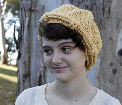 Lemon Chiffon is a pattern suitable for advanced beginner crocheters, it has puff stitches to add a little texture, with front and back post stitches used in the roll and band. The rest of the hat is worked in simple hdc.
