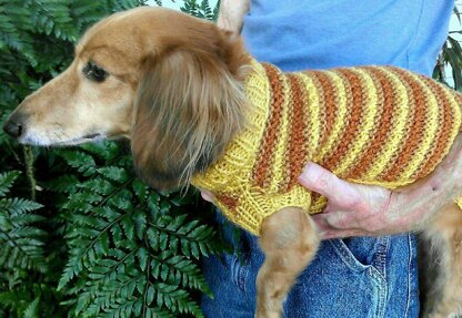 Many of my miniature dachshund sweater design buyers have asked me to come up with another design for our adorable breed ... and Lena told me she wouldn't mind a new sweater, either! So I've come up with Lena's Textured Stripe Miniature Dachshund Sweater.