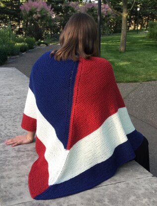 Let Freedom Ring is a fun and easy to knit shawl. Each half is knit separately and then seamed together down the middle. The garter stitch body makes the shawl nice and squishy. The sample is knit in worsted weight, but this shawl can be knit in any weight yarn, and to any size you desire. Perfect for the advanced beginner and beyond.