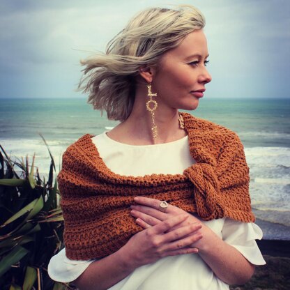 Warm and fashionable, this beautiful cowl may be worn around the neck or shoulders. Features knit-look ribbing at upper and lower edges, plus textured surface details and contrasting eyelets. The design is finished with a beautiful, knit-look braid-of-4 band.