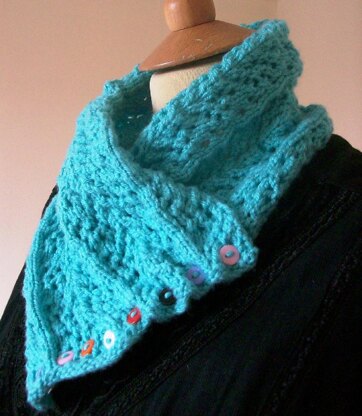 The Lichen Cowl is worked in a lovely thick lace design in an original pattern, not found elsewhere. Using an Aran/ Worsted Weight yarn and working the lace on one side only, ensures your project knits up quickly. Reminiscent of tree lichen, it’s texture forms a cosy warmth around your throat without any bulkiness and the button fastening becomes a pretty design feature.