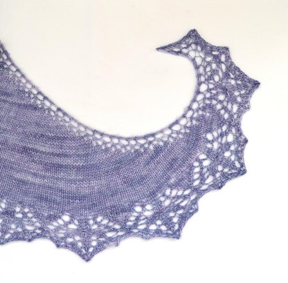Lidiya is a simple crescent shawl with main section worked in stockinette stitch and lace trim with a flower design (about 2"). Adjusted for every knitter's preferences this design has step-by-step instructions, charts and row-by-row written pattern. Recommended experience: Intermediate. Skills needed: k2tog, ssk, s2kpsso, k3tog, sssk, 3into7.