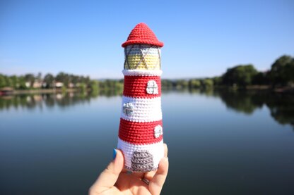 This lighthouse will guide your way even in the stormiest of seasons. Sit down, relax and crochet up this beautiful lighthouse that would look fantastic in any beach themed room, or be a great toy for a child. This is a fairly simple amigurumi project but includes some of the staples of amigurumi such as invisible decreases, working into front and back loops and simple embroidery.