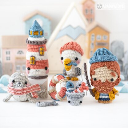 Lighthouse Island from “Mini Kingdom” collection, crochet patterns (Amigurumi tutorial PDF file) lighthouse crochet pattern seal pelican fish lighthouse keeper by AradiyaToys (Olka Novytska)