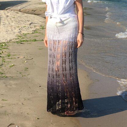 Be like a mermaid this summer! Lightweight maxi skirt is always a good choice for a hot summer day. Wear it as beach cover-up or as skirt(with simple lining)! Patterned with elongating vertical pineapple stripes, this maxi skirt is designed in a flattering wrap silhouette. It will make you feel more elegant, feminine and comfortable day and night. Sample is made from Whirl by Scheepjes, col. Liquorice Yum Yum and Cotton 8, col Black.