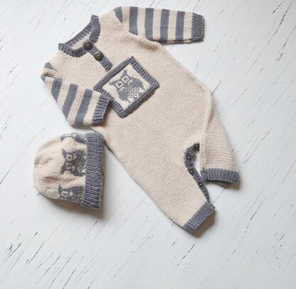 ‘Lil Hoot’ Rompers This little Romper with matching hat has just enough detail to keep you interested when knitting. Comes with Fair Isle chart for the little owls. Great outfit to bring baby home from hospital, cozy, and comfy with button openings for a quick nappy change, would suit either boy or girl.