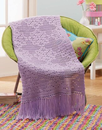 Leisure Arts Filet Afghans Lilac Mosaic Crochet ePattern- Filet crochet isn't just for doilies anymore. Make a fabulous blanket for any room in your home with this lilac mosaic design. Project can be made using size 4 worsted weight yarn and a US size J-10, 6 millimeter, crochet hook. Includes step-by-step instructions, a full filet crochet chart and a an introduction to the technique. Finished afghan measures approximately 35"x 52". Beginner skill level. Originally published in LEA5584 Leisure Arts Filet Afghans Crochet Book. 8 pages, PDF download.