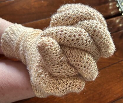 Stitch has a lot of vertical stretch. Instructions explain adding/dropping stitches, to include increasing width & length. Several pictures to follow along and emphasize ease of changing dimensions to fit your hand.
