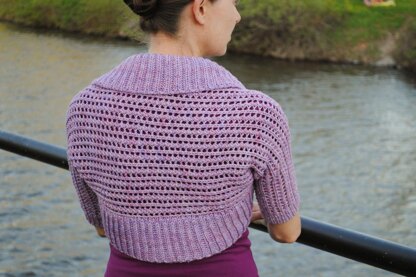 This vintage-inspired shrug is easy to knit and easy to fit. The body is knit flat in a simple lace rib, then sleeves are seamed from cuffs to armholes. The collar and edging is worked last in a stretchy brioche stitch. The sizes given are a guideline, but it's quite simple to adjust the shrug to your body as you go.