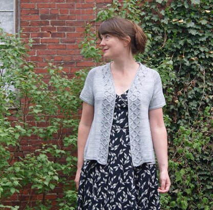 Lily is a top down, seamless, A-line, short sleeve cardigan. The A-line increases are worked between a right and left twist which form a pretty pattern down the sides. The collar pattern adds a lovely texture and is worked with simple decreases and increases.