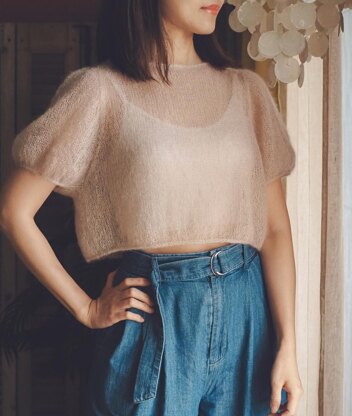Lily Sheer Top is worked seamlessly from the top-down. Gauge (With 4 mm needle): 20 sts x 24 rows = 10 x 10 cm / 4 x 4” in stockinette stitch after blocking. Recommended ease: 3~21cm / 1.25~8.25’’.