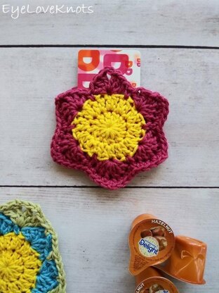 This is a quick and easy floral gift card holder that also works great as a tea bag pocket. It's worked in a small amount of yarn making it perfect for those scraps in your stash! You can also use it to gift many things like a couple Ghirardelli chocolate squares, a stick or two of biscotti, or even non-foodie gifts like a pair of earrings on a card or small floral picks. To make your own, you'll need 30 yards of worsted weight yarn - I used Knit Picks Dishie, but any worsted weight yarn will work (though acrylic may produce a slightly larger flower). For reference, this one took me just over 45 minutes to complete. It's worked in simple single crochets and double crochets so a great project for a confident beginner.