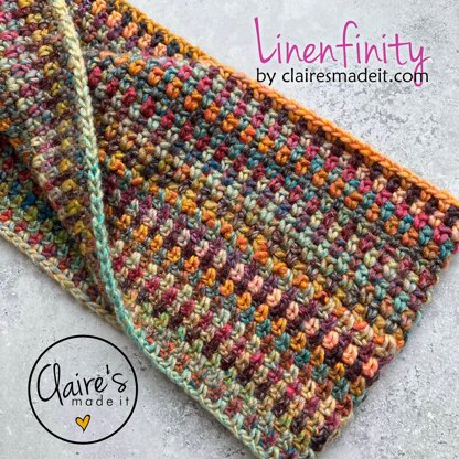 After a set up row with a twist, the rest of the cowl is a very simple stitch repeated until you reach the end of the yarn. No counting, rows, joins, or turning. Just enjoy the beautiful colours changes and combinations created by the linen stitch pattern.