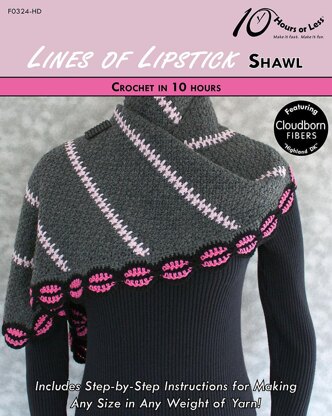 Fashion takes a fun turn in this lipstick-inspired boomerang shawl! Crocheted side-to-side in one piece, the sleek pinstriped body boasts long double crochets that interlock to resemble wool suiting. Then, using just one color per row, it’s whimsically edged with a lustrous line-up of little lips. And with our step-by-step instructions for making any size with any weight of yarn, you can crochet an array of accessories that coordinate with all your cosmetics.