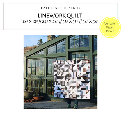 Perfect for Confident Beginner quilters wanting to try their hand at Foundation Paper Piecing, Linework is a choose your own adventure quilt. Have a play and spin your blocks around or switch it up with a fun rainbow for a striking and graphic quilt that will be totally unique to you!\n\nThe downloadable pattern includes:\n\nFull size templates including ¼” seam allowance\nOverview of Foundation Paper Piecing\nHelpful tips and diagrams for piecing and assembling your quilt top\nLots of ideas for different colour schemes and colouring pages to help you choose your layout and colours\nFat Quarter and scrap friendly\n\nSuitable for confident beginners and beyond\n\nShare your projects with #LineworkQuilt and @CaitLisleDesigns