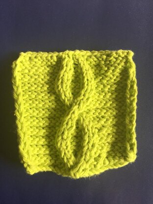 This coaster will make a very attractive and bright addition to your homemade coaster collection! It takes a short amount of time to make and less than one skein of the peaches and cream yarn. I used Hot green for mine. Gauge is not critical. Cable needle is necessary for this pattern. (If you do not have one a safety pin works just as well!)