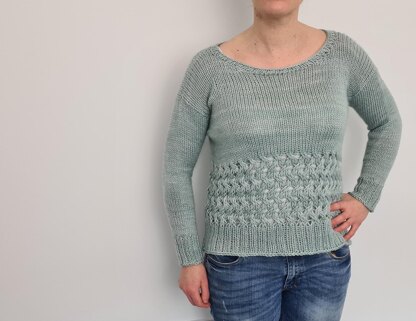 A super simple, slightly cropped sweater with a stunning elongated basketweave pattern.