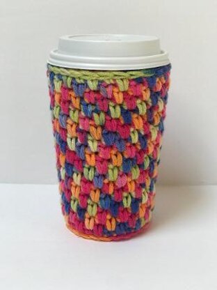 Seamless cozy is crocheted from the bottom up. Crocheted base has the added benefit of serving as a coaster.