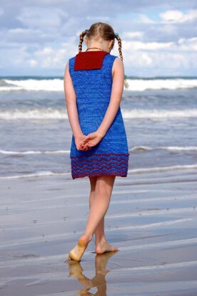Jumper flap and neckties are knit onto the dress upon completion.
