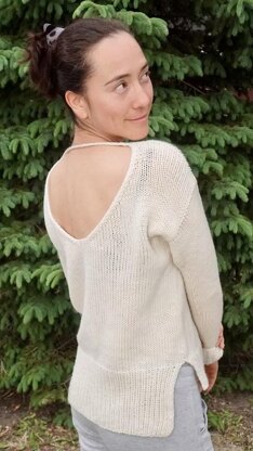 The Lisa Sweater is a comfy v neck sweater knitted in the round from the bottom up. It is then knitted flat from the underarm separating the front and back. It is made to fit with a 2 - 4 inch positive ease.