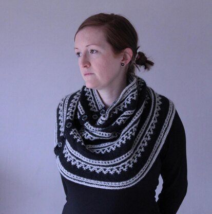 Lissanover Cowl is inspired by the geometric surface decoration on gold lunulae in the collection of the National Museum of Ireland. The cowl came to life as a solution to keeping my shoulders & neck warm while working from home, and keeping scarf ends out of the way of multiple cups of tea!