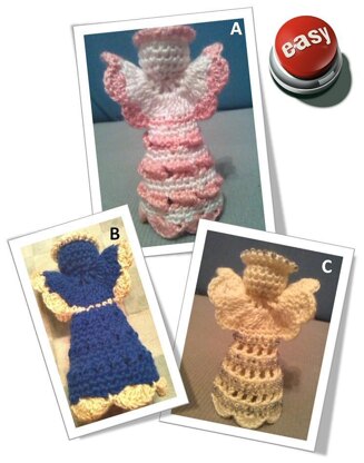 B- With sport weight yarn of your preference and Size D/3 (3 mm) crochet hook, angel is 5 inches tall