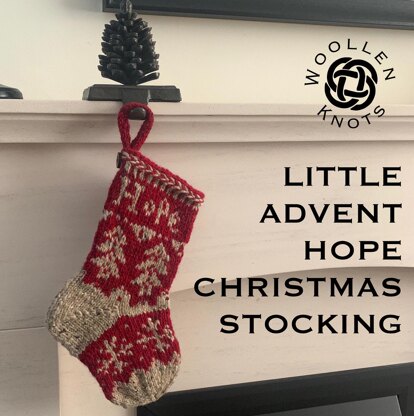 This little **Little Advent Hope Christmas Stocking** is worked in two colour stranded colourwork. There are written instructions and charts for the colourwork. It is knit using a short circular needle and dpns, but can be easily adapted to the magic loop method.