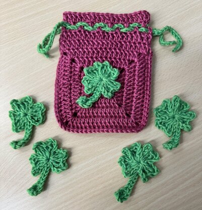 You could also use this shamrock and four-leaf clover pattern for a banner, simply make a series of them along with a much longer string and chain them to the string. Alternatively use the simple drawstring bag pattern for a gift bag?