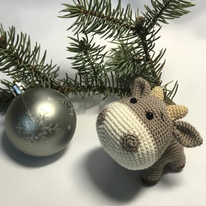 This is a pattern of little bull symbol of the new 2021 year. If you’ll crochet this toy with thin, acrylic yarn alize forewer (as I did), high will be only 3,5 inches, so you can use it like a toy for christmas tree , or a keychain, or just like cutest new year present for someone you care about. You need a yarn of three colors, hook 1,5, needle for sewing, two beads or safety eyes, stuffing and couple hours of your free time. Also you can choose any yarn that you like, and hook additional to the yarn - than size will be different.