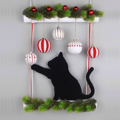 The cat crocheted as a silhouette and the three-dimensional Christmas baubles are an unusual eye-catcher for doors and walls instead of a door wreath and really make you want to celebrate Christmas.