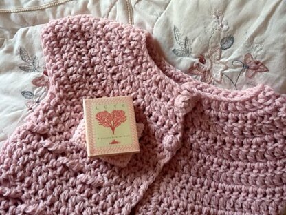 Textured with raised stitches throughout. Crocheted entirely in one piece with no seams. Unique crocheted buttons. Simple stitches used.