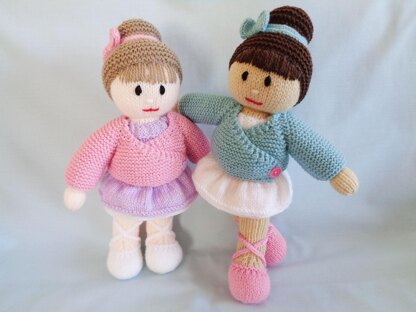 Isabella is a 13 inch (34 cms) ballerina doll knitted in DK yarn. Hair is knitted in garter stitch and sewn in place. Tutu and ballet wrap are also in DK yarn and ballet wrap is removable.
