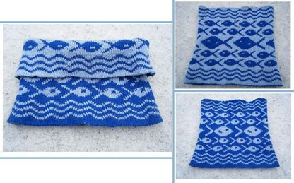 Little Fish, Big Fish is a doubleknit cowl with an allover fish and wave pattern. Worked in doubleknit technique, the cowl has a double fabric, ensuring it is warm and cozy. There are instructions for both a snug or a slouchy version, in either worsted weight or fingering weight yarn.
