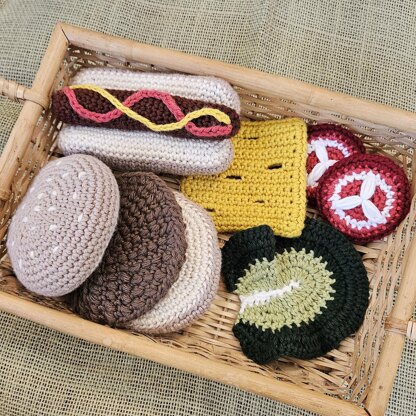 Craft your own delightful play food replicas of hamburgers and hot dogs, complete with all the fixings: lettuce, cheese, and tomatoes. Encourage imaginative play and Montessori learning with this engaging pattern that brings creativity to life!