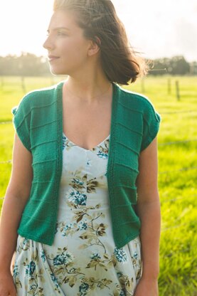 A sweet little summer sweater with easy rectangular construction and garter stitch ridges for visual interest and texture. This pattern is the perfect light cardigan to toss on over a sundress, swimsuit, or summer blouse.