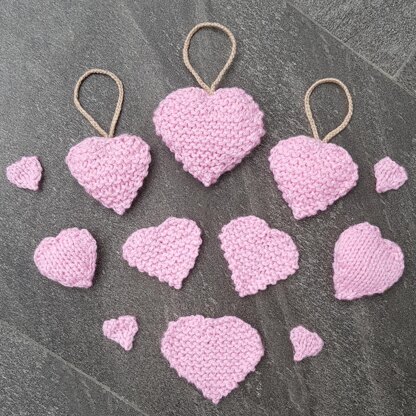Made up of one knitted piece, or two knitted pieces placed together, to make a 2D or 3D little knitted love heart. A finger-knitted loop or string can be made to display your knitted hearts, and embroidery ideas are given to personalise your little knitted gift. For Valentine's day or whenever you wish to show your love or appreciation!