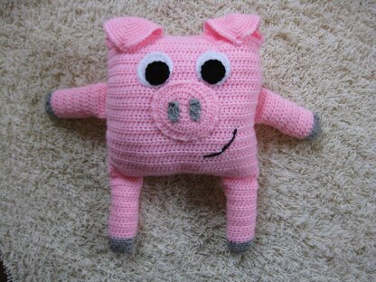 Little Pillow Pals – Pig is a cute 10x10 inch pillow you will love to hug or have sit on your sofa. He is made with worsted weight yarn and uses basic crochet stitches (ch, sc, hdc). He is stuffed with poly-fil. Pattern includes written instructions with pictures.