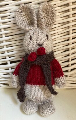 Cute Little Festive Rabbit Knitting Pattern. Suitable for knitters with some experience and basic knitting skills. Must be able to knit purl, increase, decrease and make sts. An ideal Christmas decoration or gift, but not suitable for children.