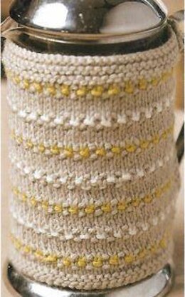 This is a pattern for a little sheaf cafetiere cosy, orignally published in Simply Knitting. It has a colour and texture stitch with garter stitch edges, and a button fastening. Photos Simply Knitting.