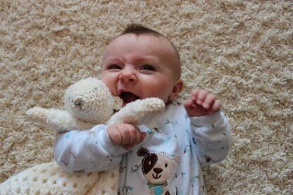 Pattern includes instructions for 3 different toys: Lovey with a Fluffy Blanket, Lovey with a Granny Square Blanket and the Stuffed Toy.