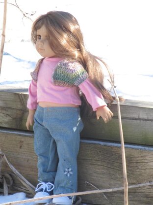 This is a simple, top down shrug for American Girl or other 18" sized dolls. My model is an 18" doll that came from the Lakeside Catalog, that appears to be similar to the Michael's brand of 18" dolls.