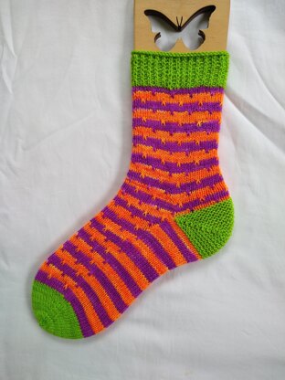 Pattern can be worked either toe up or cuff down. If done toe up, I think the slipped stitches look like little sprouts. If done cuff down, they look like little droplets of rain.