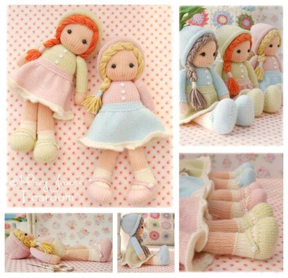 The dolls are created using basic knitting stitches and are worked 'in the round' using double pointed needles.